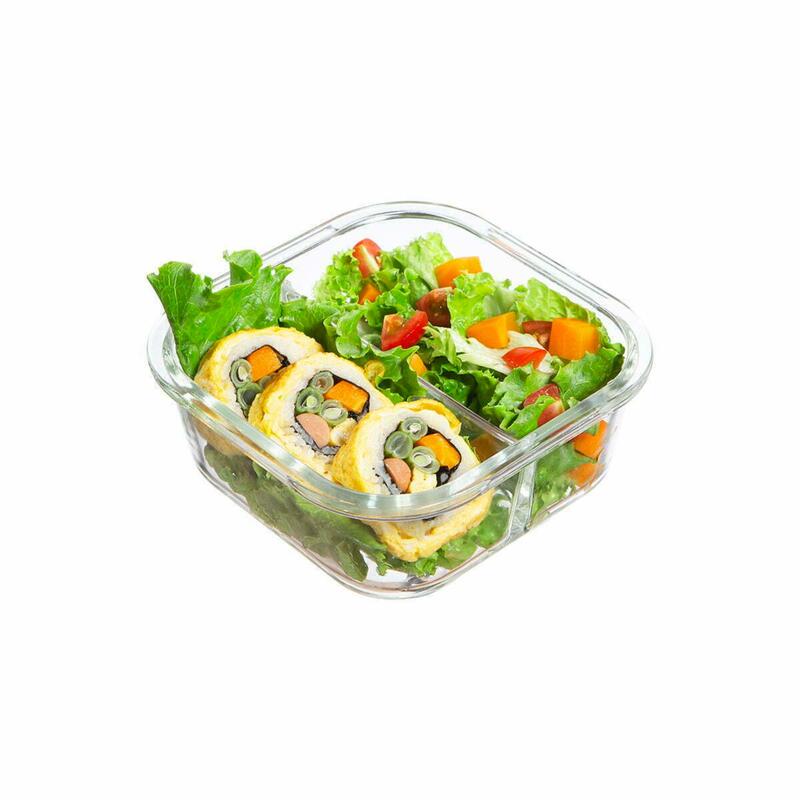 Inochi Nikko Square 2-Compartment Glass Food Storage Container | Leakproof, BPA-Free, Microwave & Oven Safe