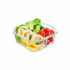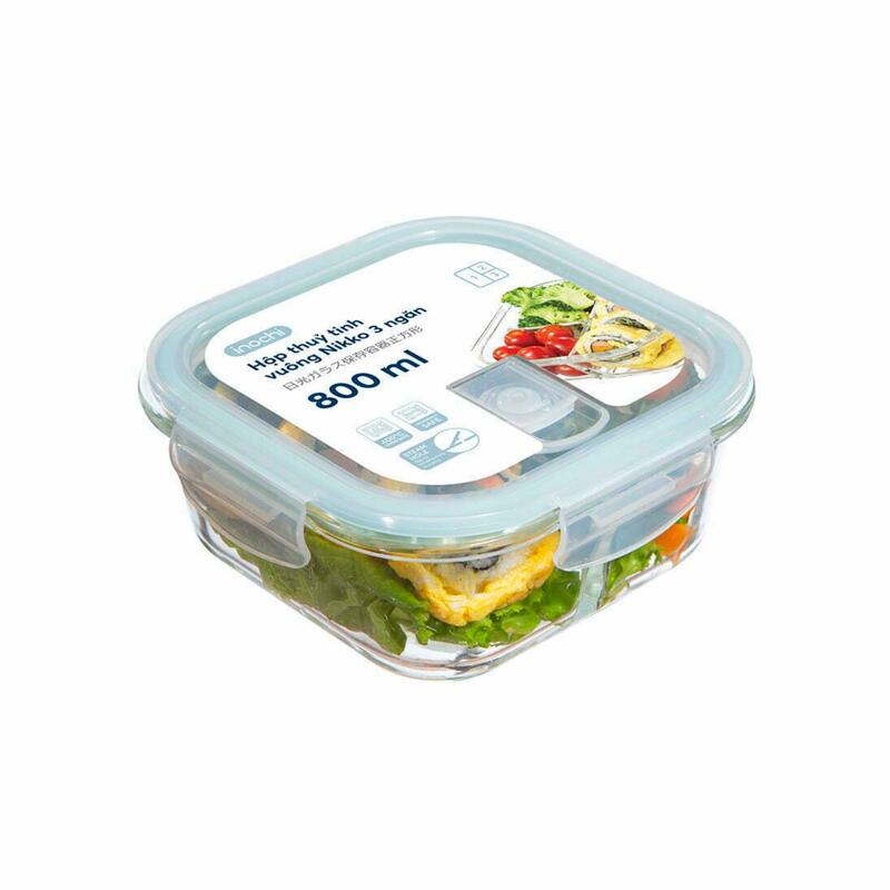 Inochi Nikko Square 3-Compartment Glass Food Storage Container | Leakproof, BPA-Free, Microwave & Oven Safe