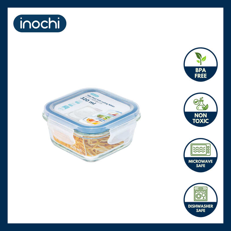 Keep your food fresh, safe, and well-organized with the Inochi Nikko Square Glass Food Container. Made from premium heat-resistant glass and fitted with a 4-side locking PP lid and silicone gasket, it provides an airtight, leak-proof seal — perfect for storing leftovers, meal prepping, or carrying food on the go. Free from BPA, Melamine, and Dioxin, it's microwave, oven, and dishwasher safe, combining health, durability, and modern elegance for any kitchen. Inspired by "Nikko" – meaning sunshine – this container brings freshness and brightness to your daily meals.