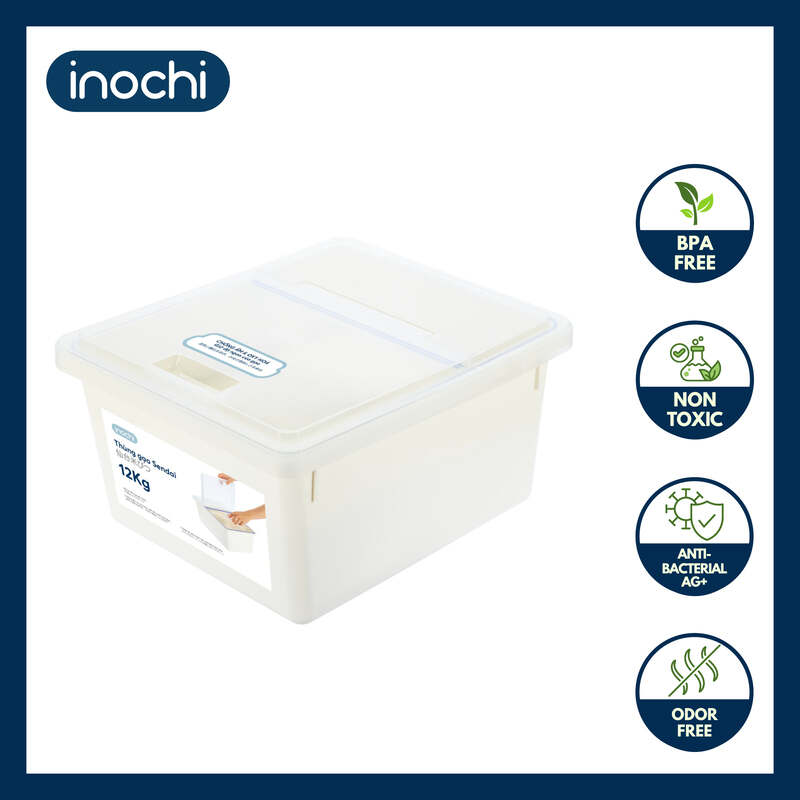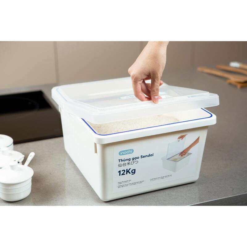 Inochi Sendai Rice Stocker – 12kg Airtight Rice Storage Container with Antibacterial Lid