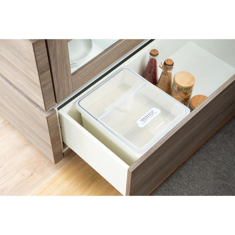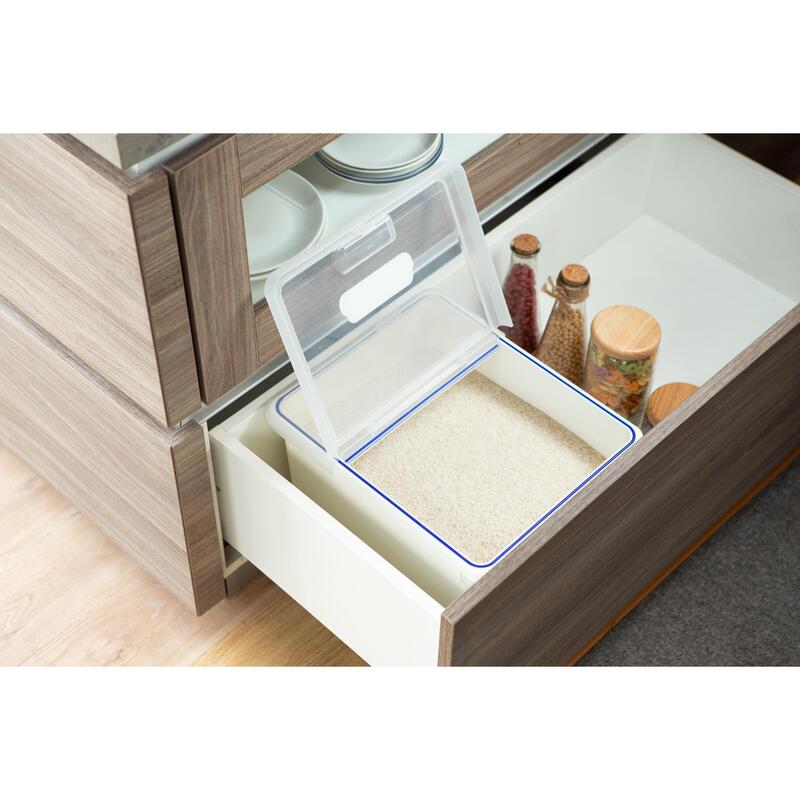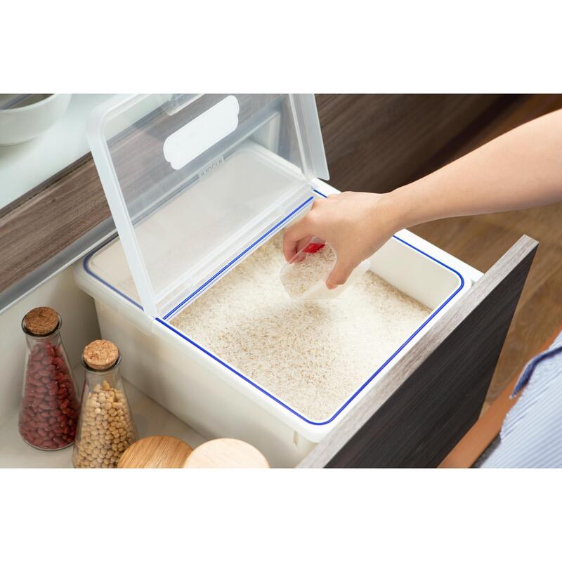 - Stores up to 12kg of rice without occupying too much kitchen space