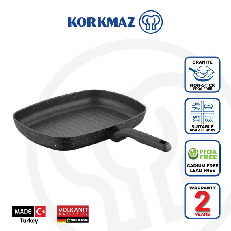 Korkmaz Ornella Non-Stick Grill Pan - Induction Compatible, Free from PFOA, Cadmium, or Lead, Made in Turkey