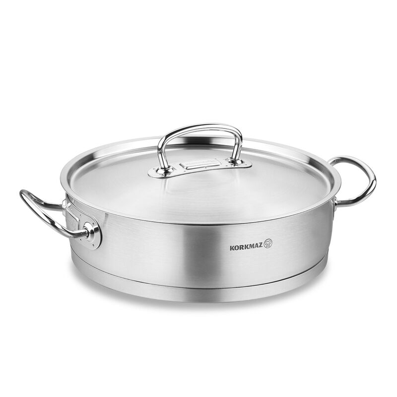 Korkmaz Proline Stainless Steel Saute Pan - Induction Compatible Chef Cooking Pan, Made in Turkey