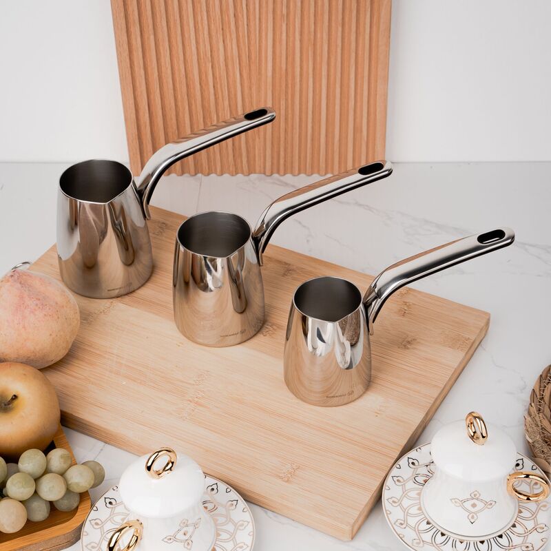 Korkmaz Vertex Stainless Steel Turkish Coffee Pot Set - Made in Turkey