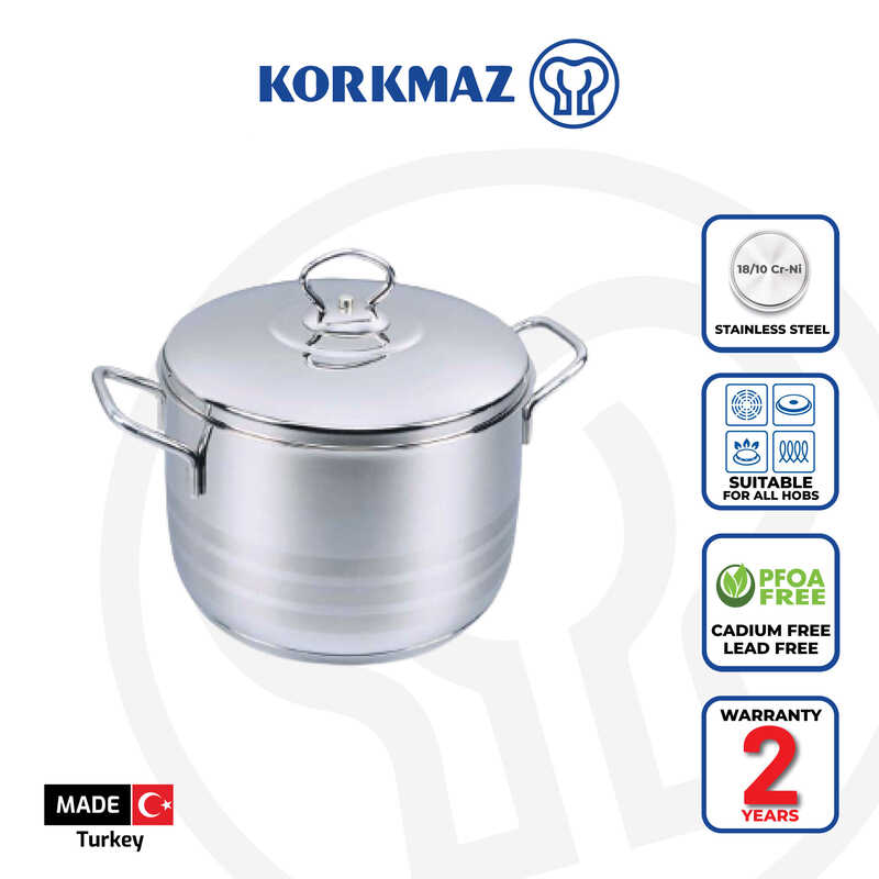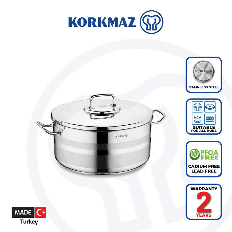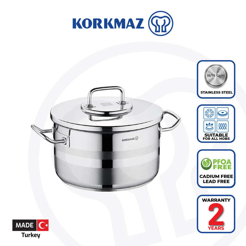 Discover our premium quality 18/10 stainless steel and non-stick cookware collection from Korkmaz. From frying pans to teapots, dining sets to kitchen utensils, and pressure cookers to more, we have everything you need to cook up a storm in your kitchen. Our cookware is made with the highest quality materials to ensure even heat distribution and durability, making it the perfect choice for any home chef. Shop now and elevate your cooking game with Korkmaz.