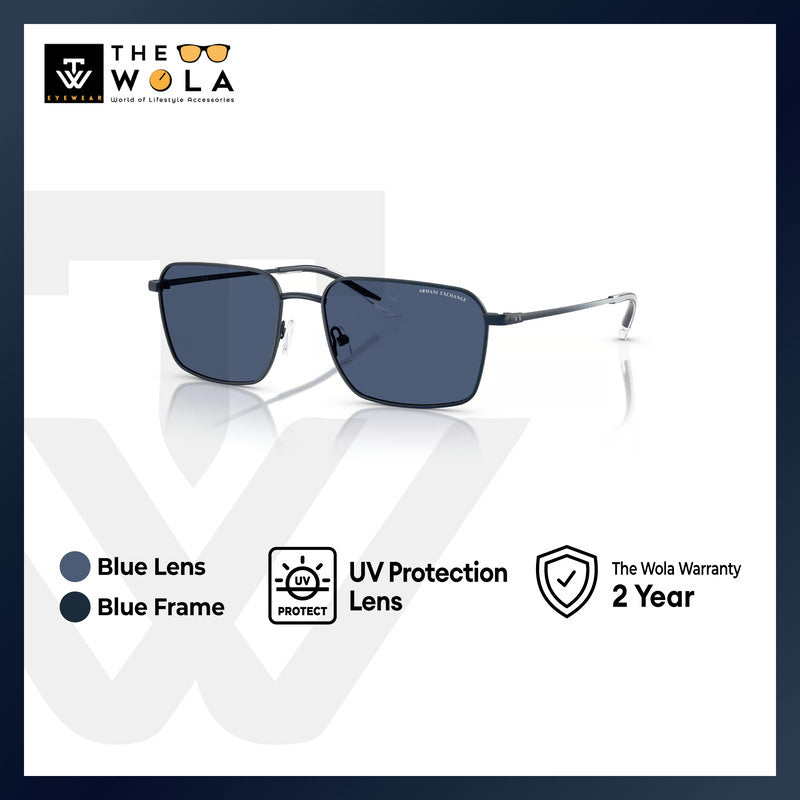 Armani Exchange Men's Pilot Frame Matte Blue Metal Sunglasses - AX2050S