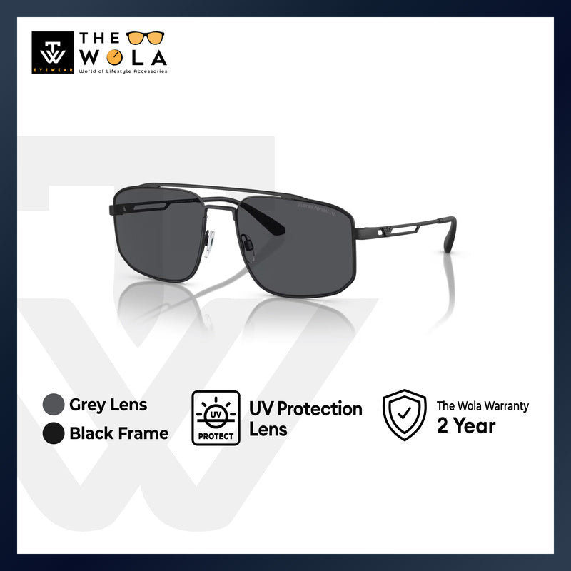 Emporio Armani Men's Rectangle Frame Black Metal Sunglasses - EA2139