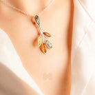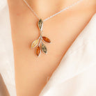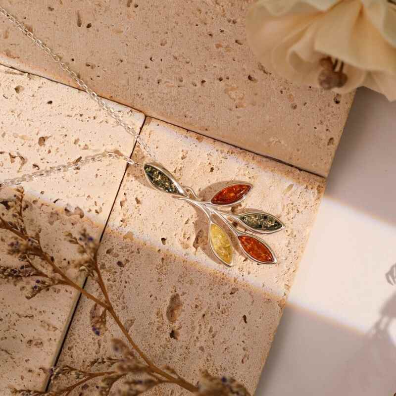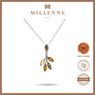 MILLENNE Multifaceted Baltic Amber Branching Leaves Silver Pendant with 925 Sterling Silver