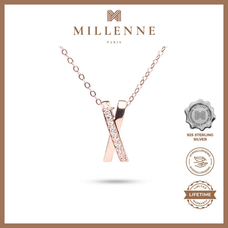 MILLENNE Made For The Night Studded X Cubic Zirconia Rose Gold Necklace with 925 Sterling Silver