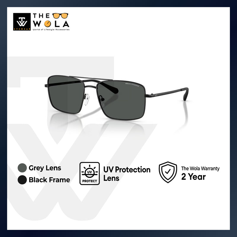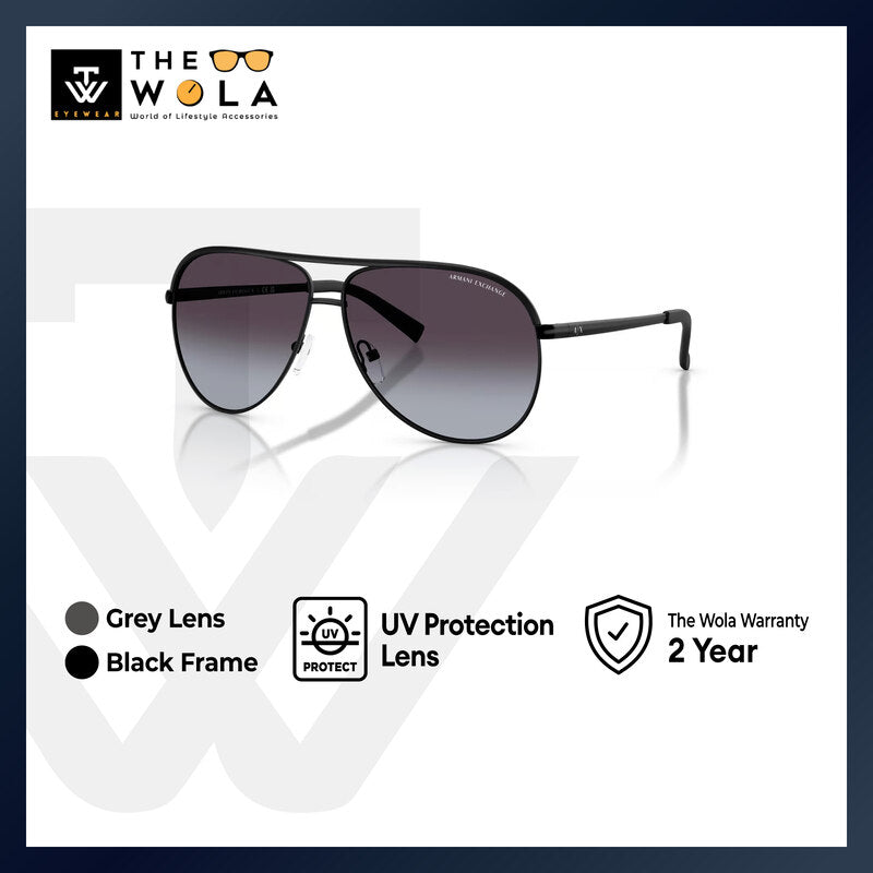 Armani Exchange Unisex's Pilot Frame Black Metal Sunglasses - AX2002