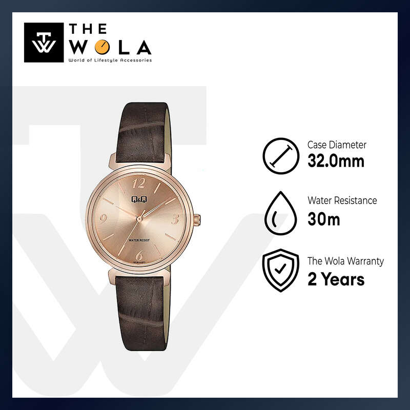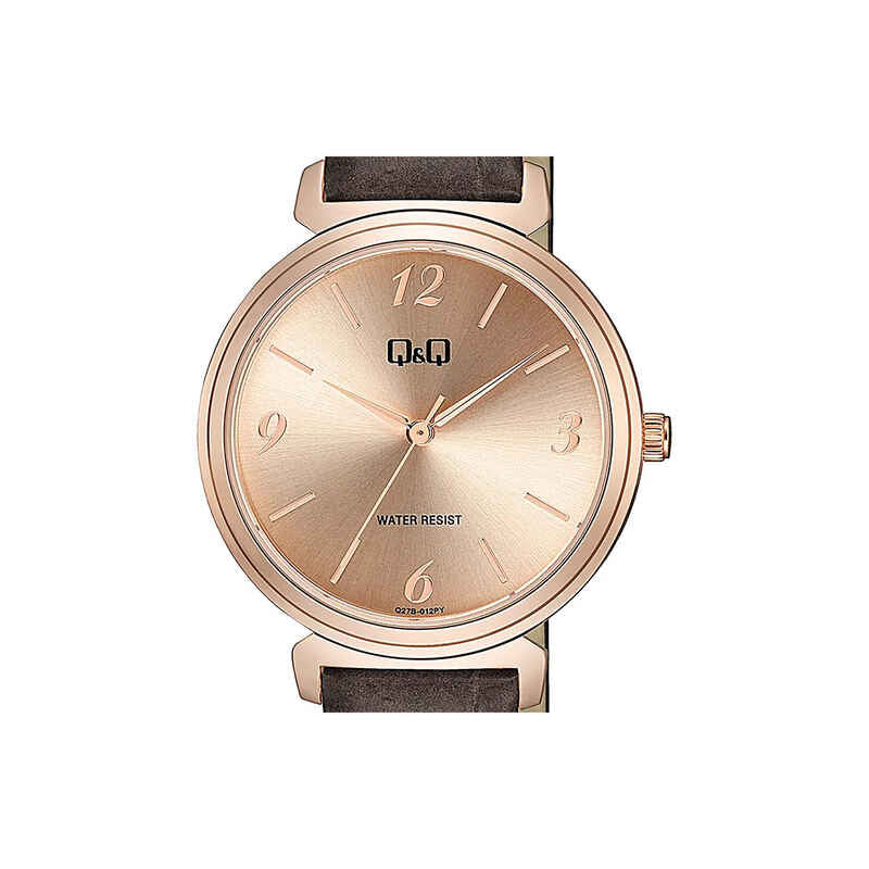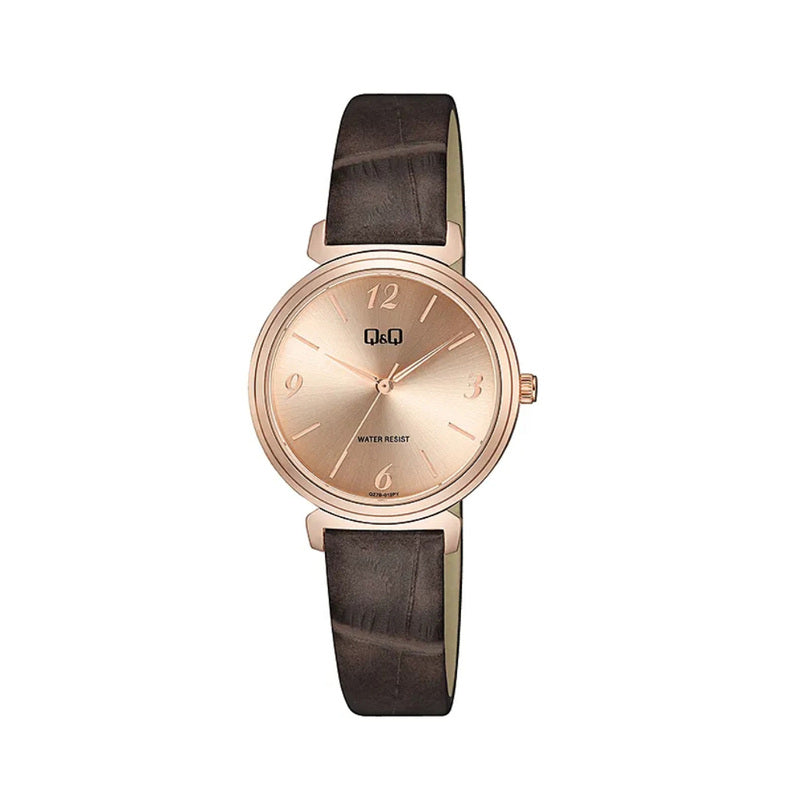 Q&Q Watch by Citizen Q27B-012PY Women Analog Watch Brown Leather Strap