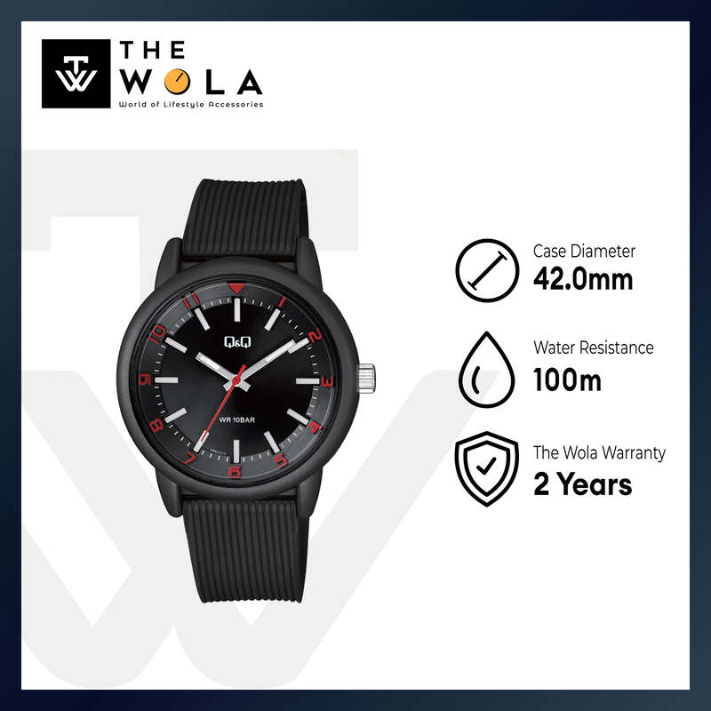 Q&Q Watch by Citizen V02A-007VY Men Analog Watch Black Rubber Strap