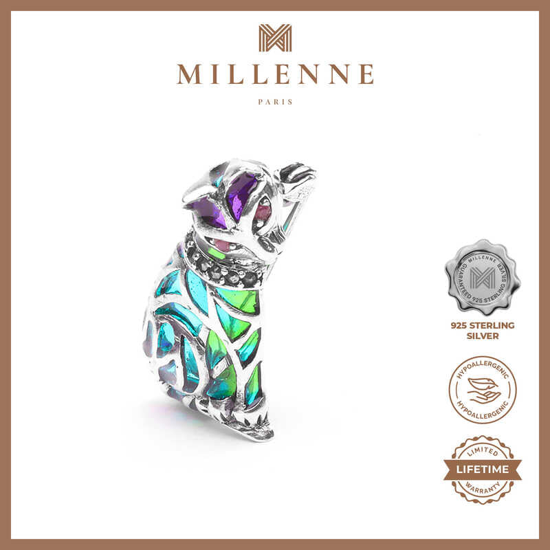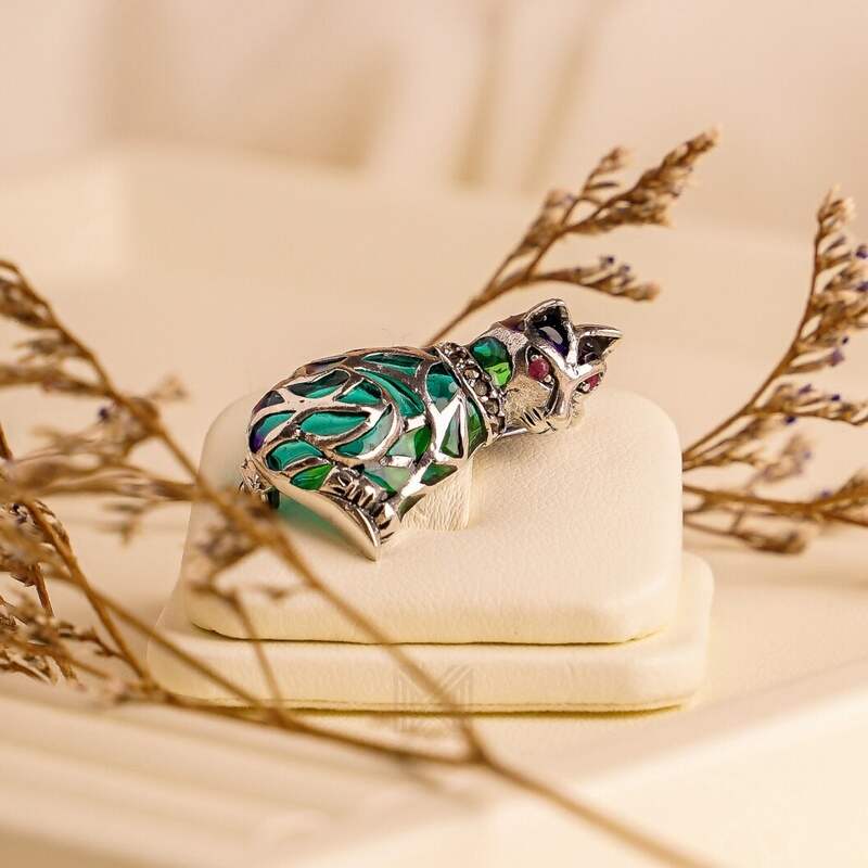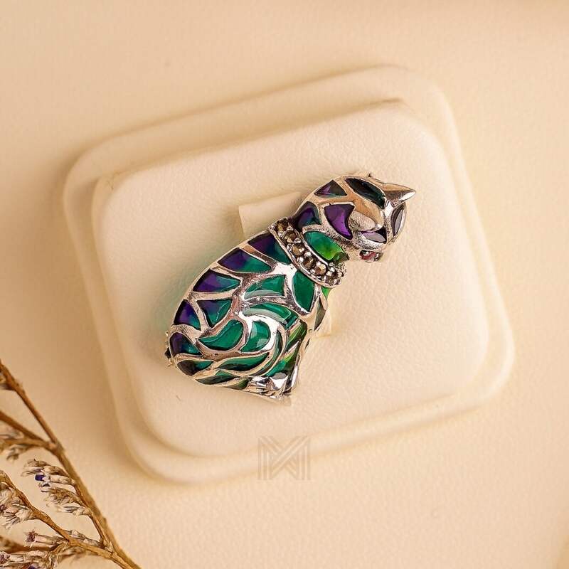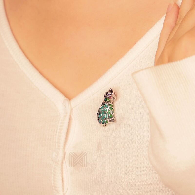 MILLENNE Multifaceted Abalone Shell Cat White Gold Brooch with 925 Sterling Silver