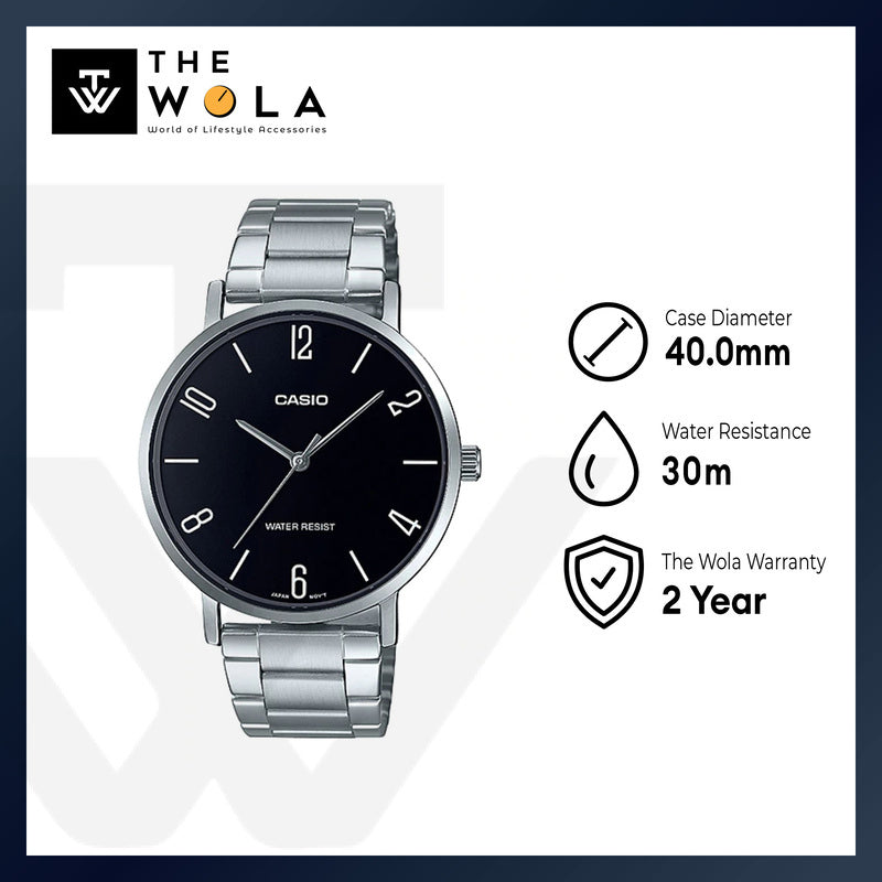 Casio Men's Analog Watch with Stainless Steel Band MTP-VT01D-1B2