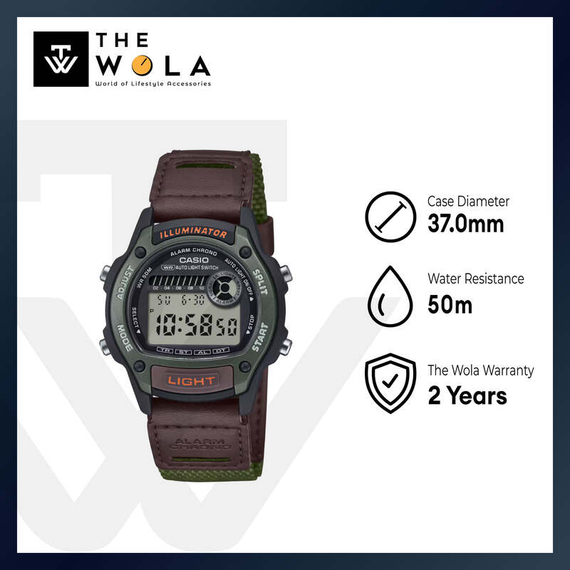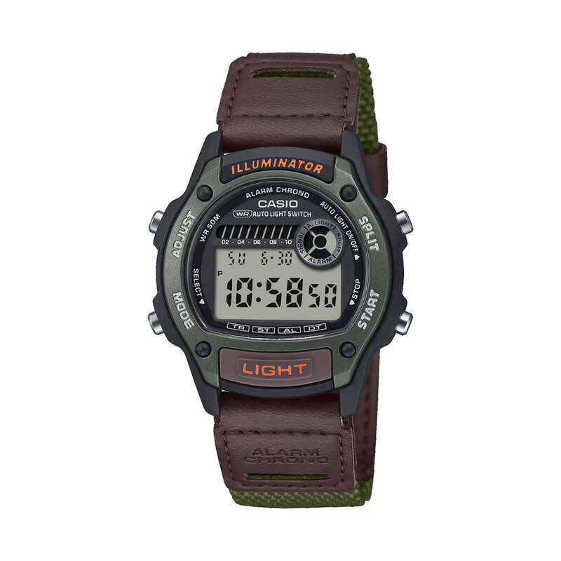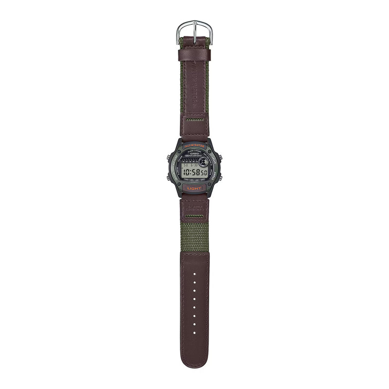Casio W-220HF-3AV Men Digital Sports Watch Green Leather Band