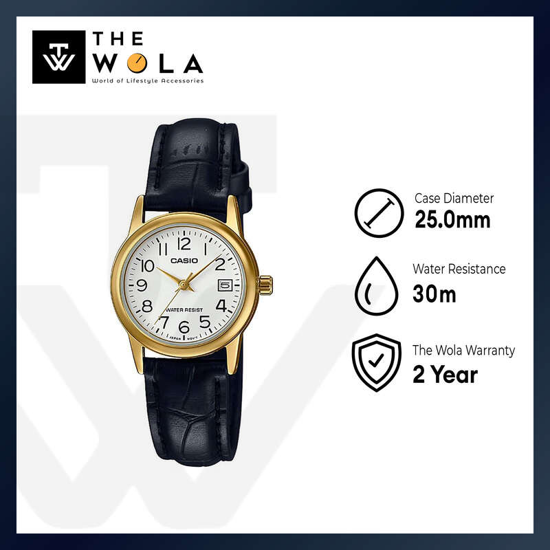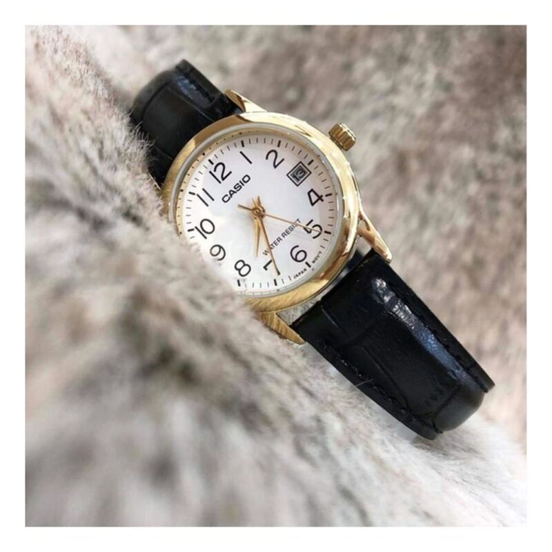 Casio Women's Analog Watch LTP-V002GL-7B2 Black Leather Band Watch for ladies