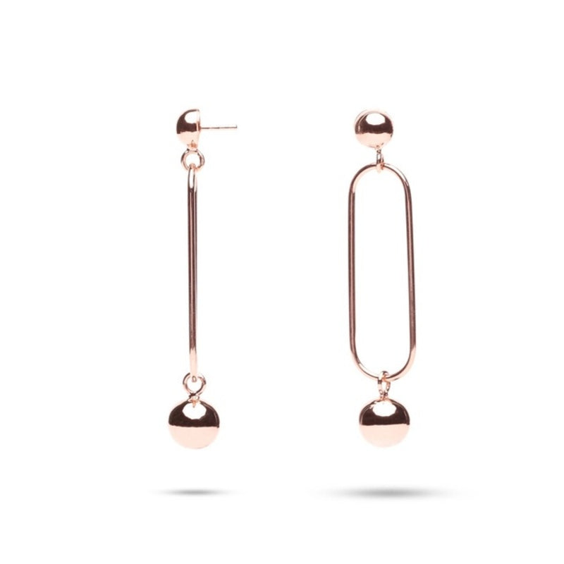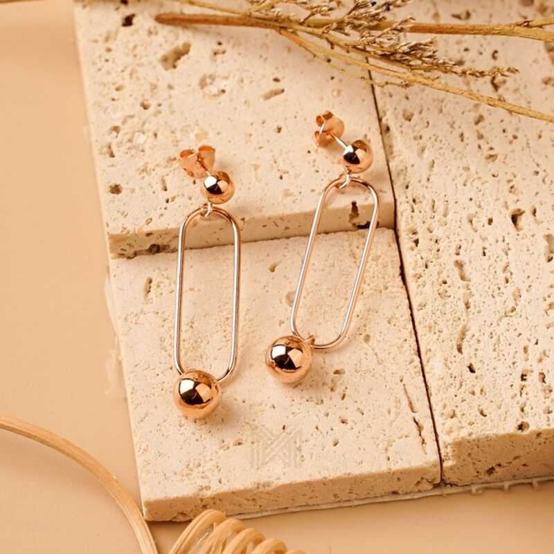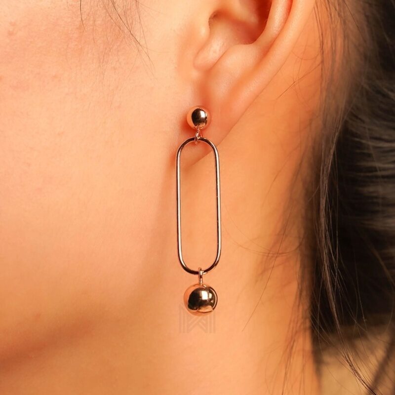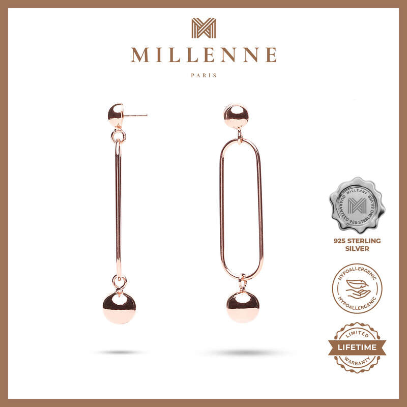 MILLENNE Minimal Oval Open Hanging Sphere Stud Rose Gold Drop Earrings with 925 Sterling Silver
