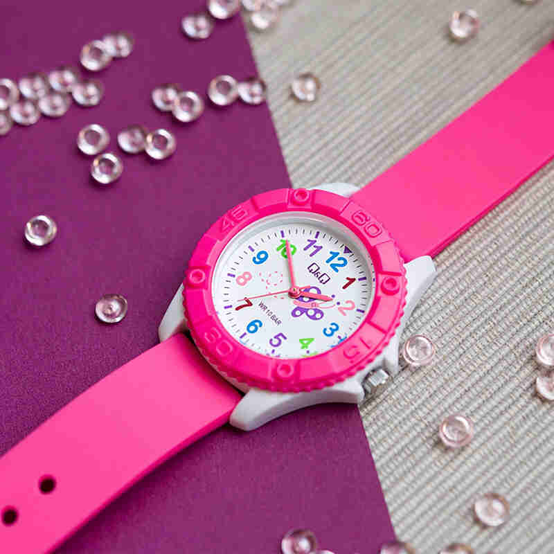 Q&Q Watch By Citizen VQ96J025Y Kids Analog Watch with Pink Rubber Strap