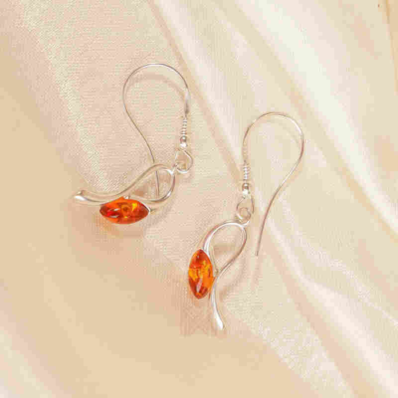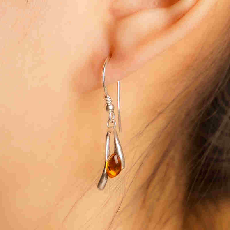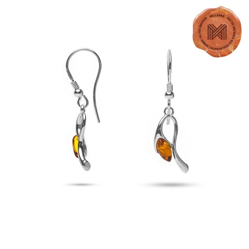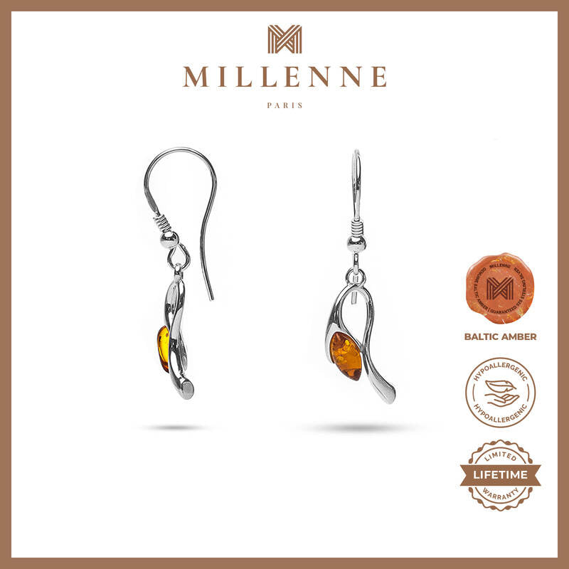 MILLENNE Multifaceted Baltic Amber Curved Oval Silver Teardrop Earrings with 925 Sterling Silver