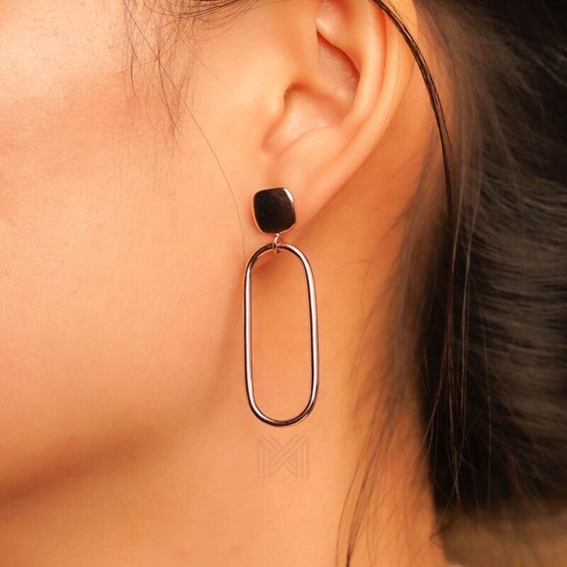 MILLENNE Minimal Square Studs Open Oval Rose Gold Drop Earrings with 925 Sterling Silver