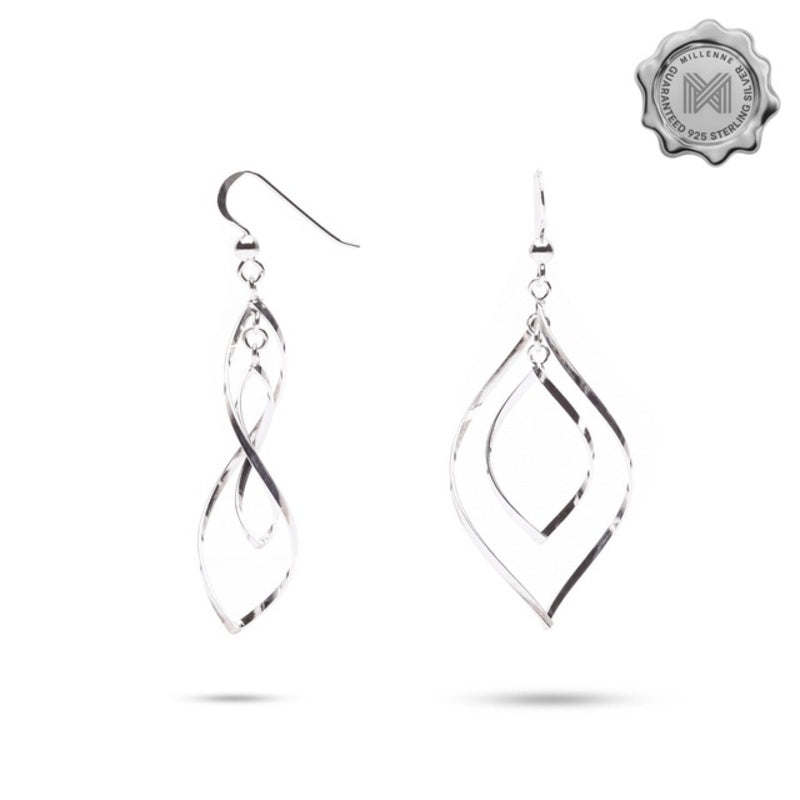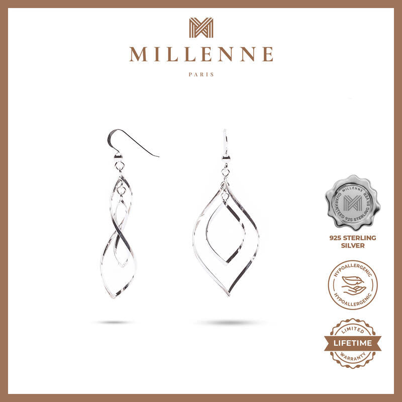 MILLENNE Millennia 2000 Swirl Infinity Hook Silver Dangle Earrings with 925 Sterling Silver