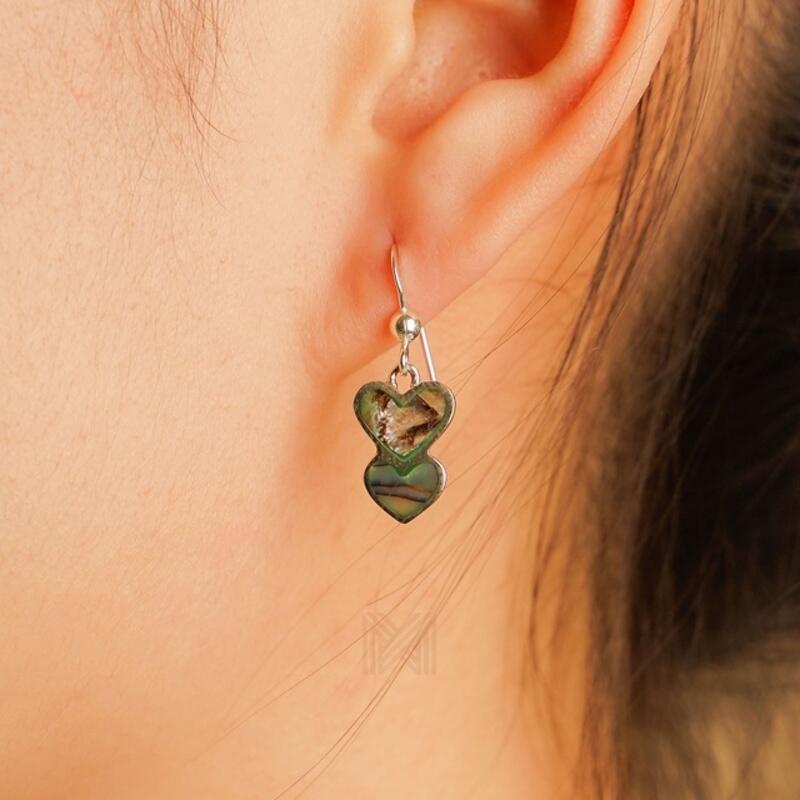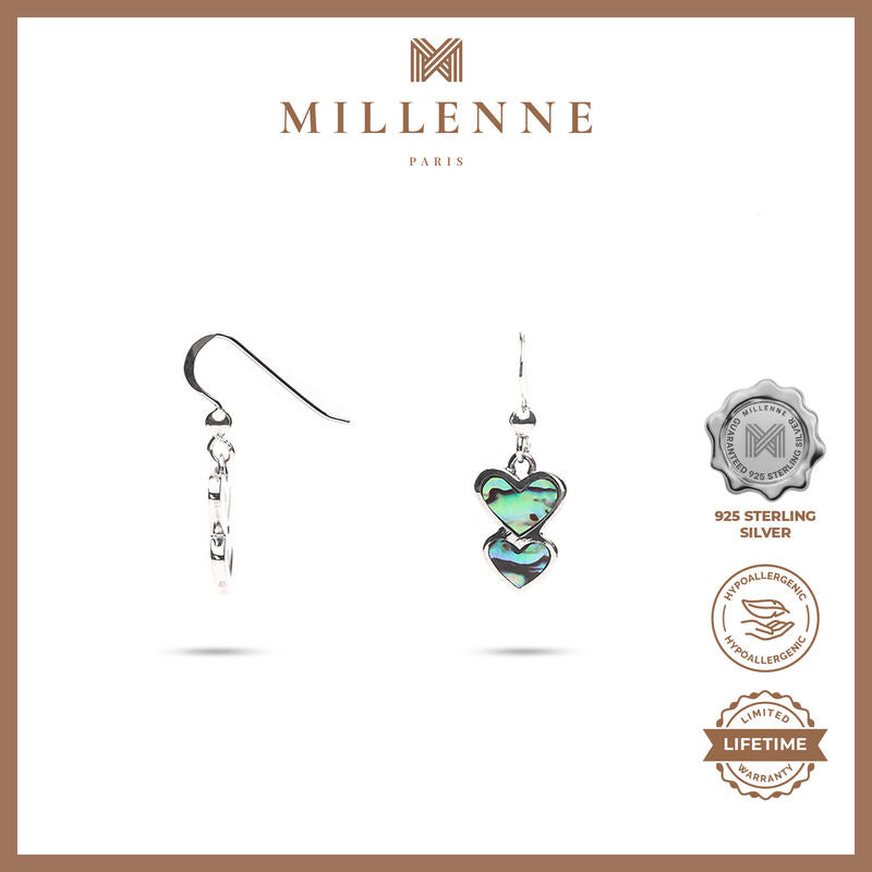 MILLENNE Millennia 2000 Abalone Shell Heart Silver Hook Earrings with 925 Sterling Silver
