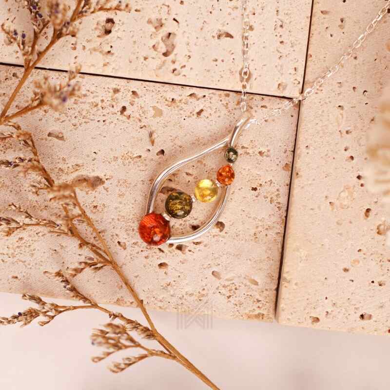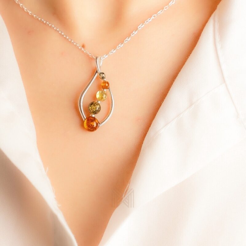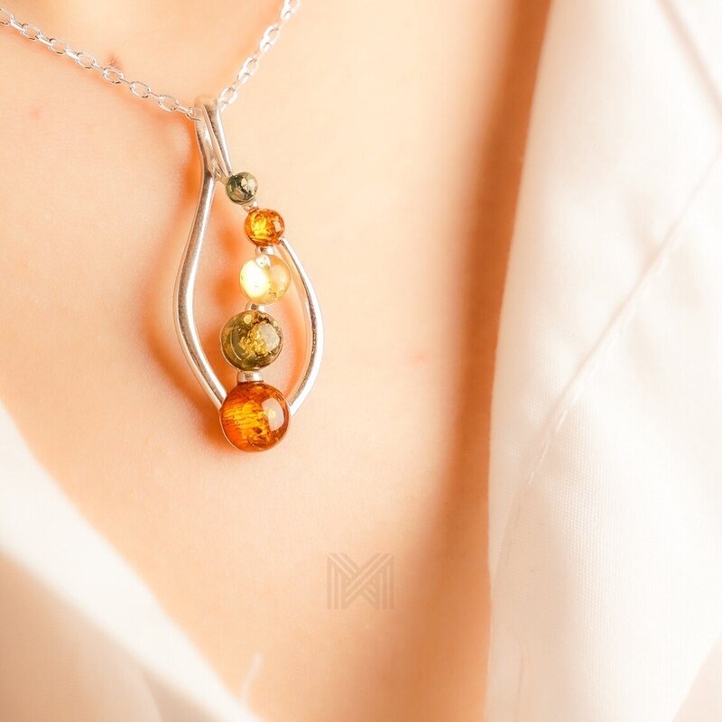 MILLENNE Multifaceted Baltic Amber Fringe Caged Silver Pendant with 925 Sterling Silver