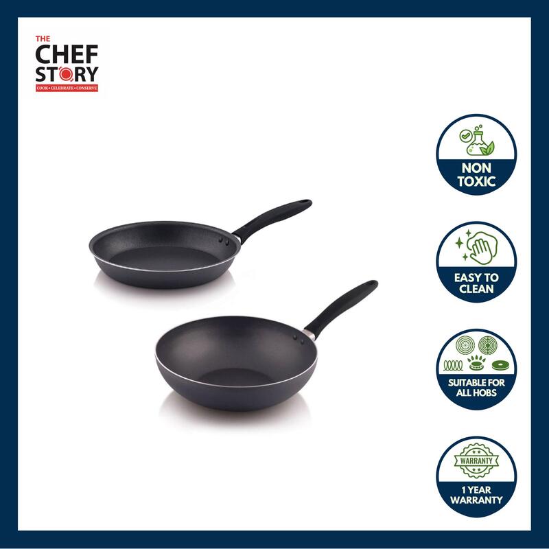The Chef Story Everyday Series Non-Stick Cookware Set | 28cm Frying Pan & Wok | PFOA-Free | Induction Compatible