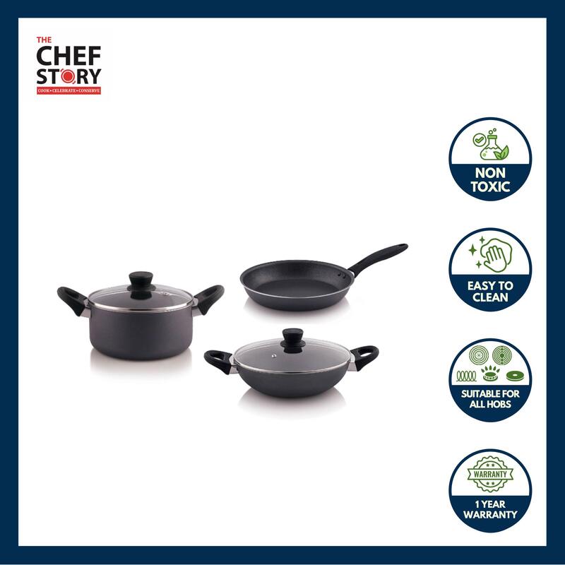 The Chef Story Everyday Series Non Stick Cookware Set 5 Pcs | Fry Pan, Wok & Casserole | Induction Compatible