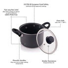 - Premium two-way non-stick coating on both interior and exterior surfaces for easy cooking and quick cleanup.