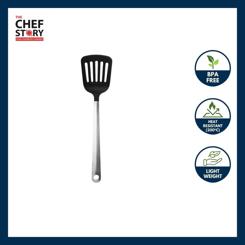The Chef Story Everyday Series Non-Stick Slotted Turner | Heat-Resistant Nylon | Safe for Non-Stick Cookware