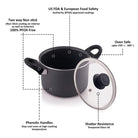 - This soup pot features dual non-stick coating inside and outside for effortless cooking and easy cleaning.