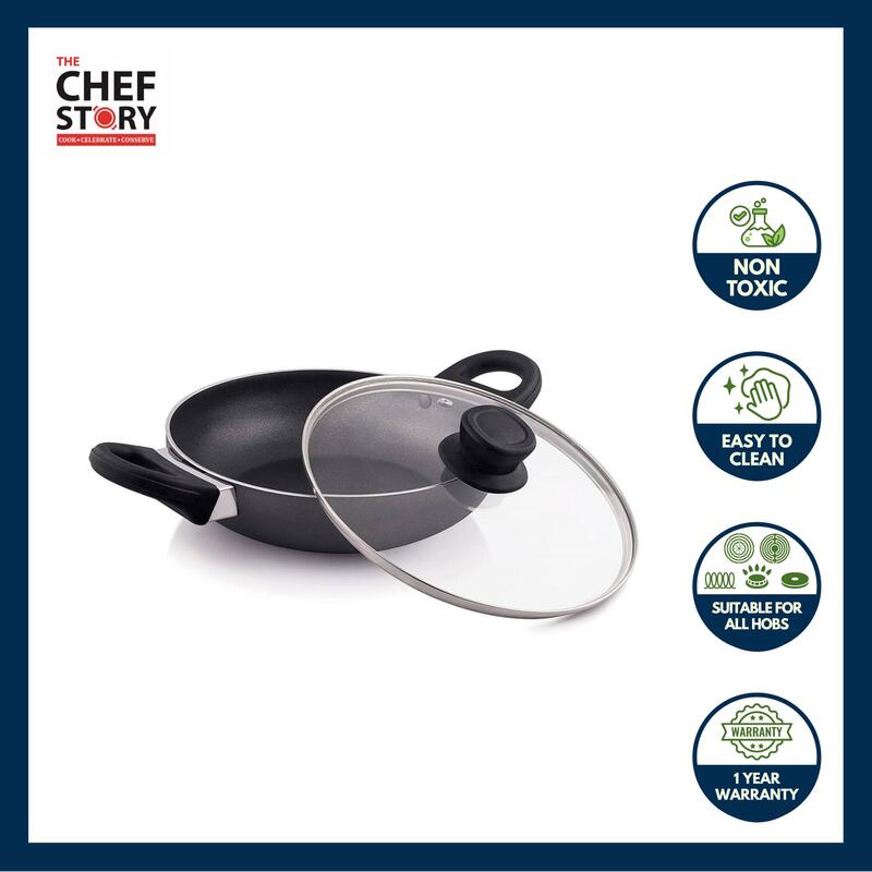 The Chef Story Everyday Series Non-Stick Wok with Lid | Induction Compatible | TEFLON Coating | PFOA-Free