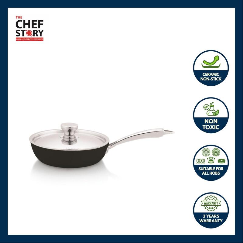 The Chef Story My Cera Series Black Ceramic Non Stick Frying Pan | 100% Non-Toxic | Induction Compatible | Eco-Friendly