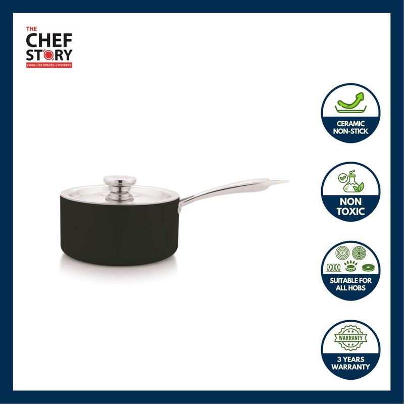 The Chef Story My Cera Series Black Ceramic Non Stick Saucepan | 100% Non-Toxic | Induction Base | Eco-Friendly Cookware