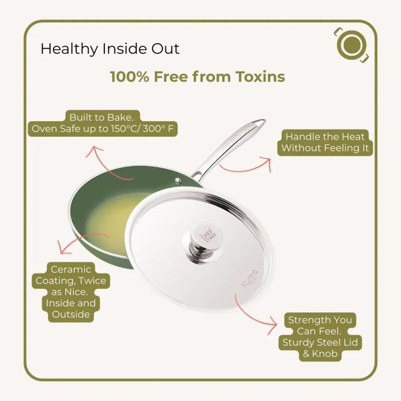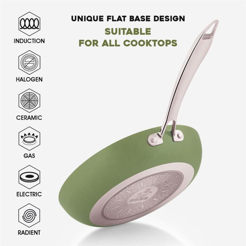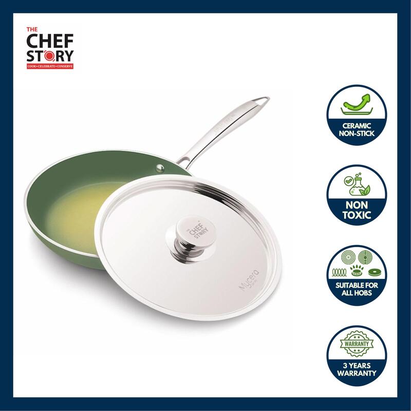 The Chef Story My Cera Series Ceramic Non Stick Frying Pan Green | 100% Non-Toxic | Induction Compatible | Eco-Friendly
