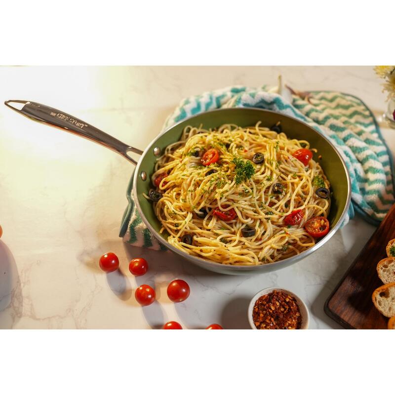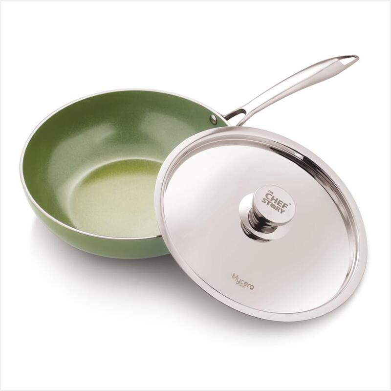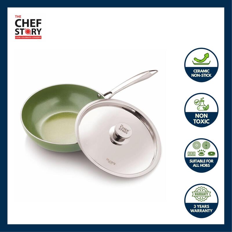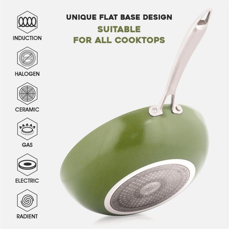 The Chef Story My Cera Series Non Stick Ceramic Wok Green | 100% Non-Toxic | 26cm & 28cm | Induction Compatible