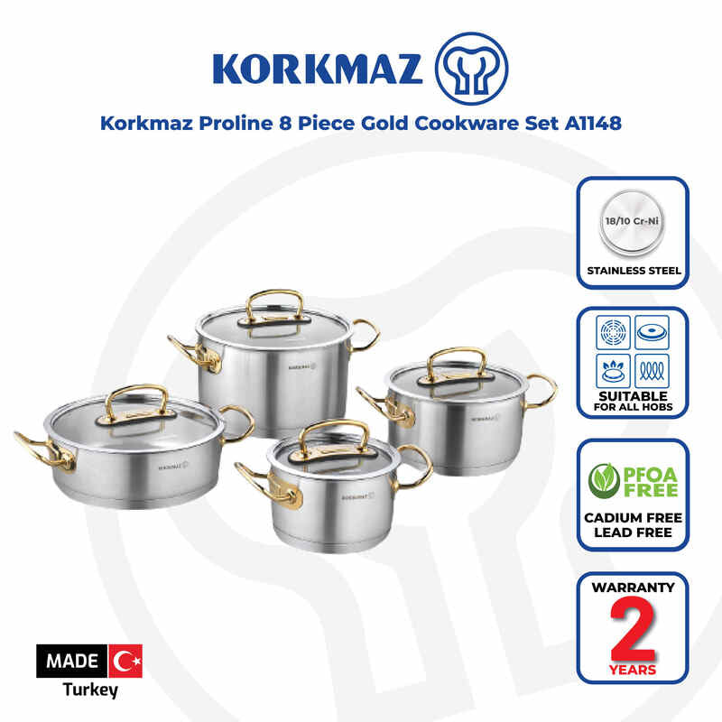 Korkmaz Proline 8-Piece Stainless Steel Cookware Set - Induction Compatible, Stock Pot Set, Made in Turkey