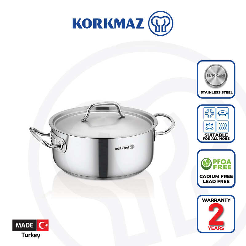 Korkmaz Proline Gastro Stainless Steel Cooking Pot - Induction Compatible, Made in Turkey