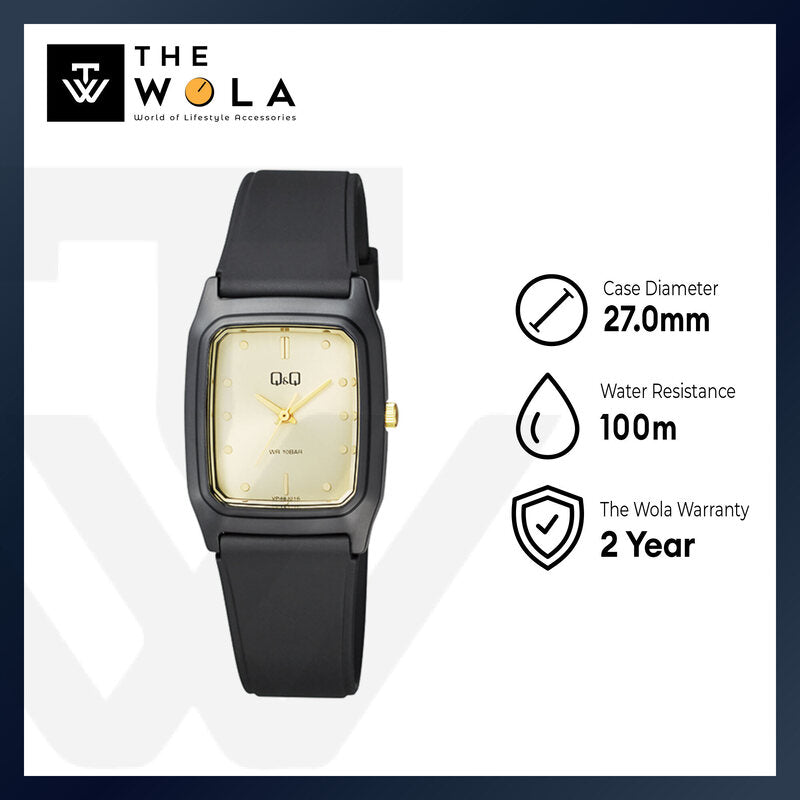 Q&Q Watch By Citizen VP35J011Y Women Analog Watch with Black Rubber Strap