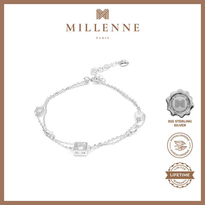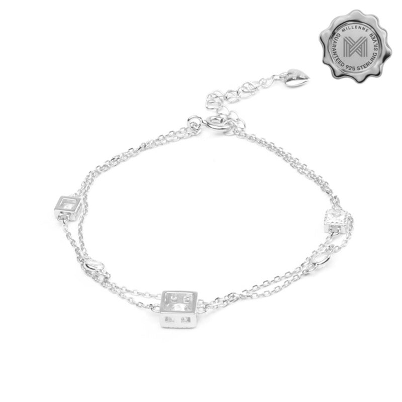 MILLENNE Made For The Night Embellished Geometric Charms Cubic Zirconia Rhodium Bracelet with 925 Sterling Silver