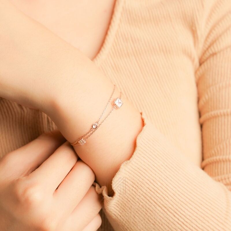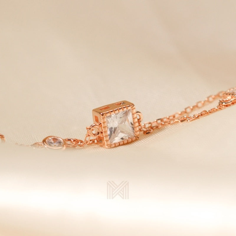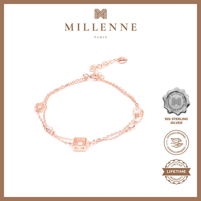 MILLENNE Made For The Night Embellished Geometric Charms Cubic Zirconia Rose Gold Bracelet with 925 Sterling Silver