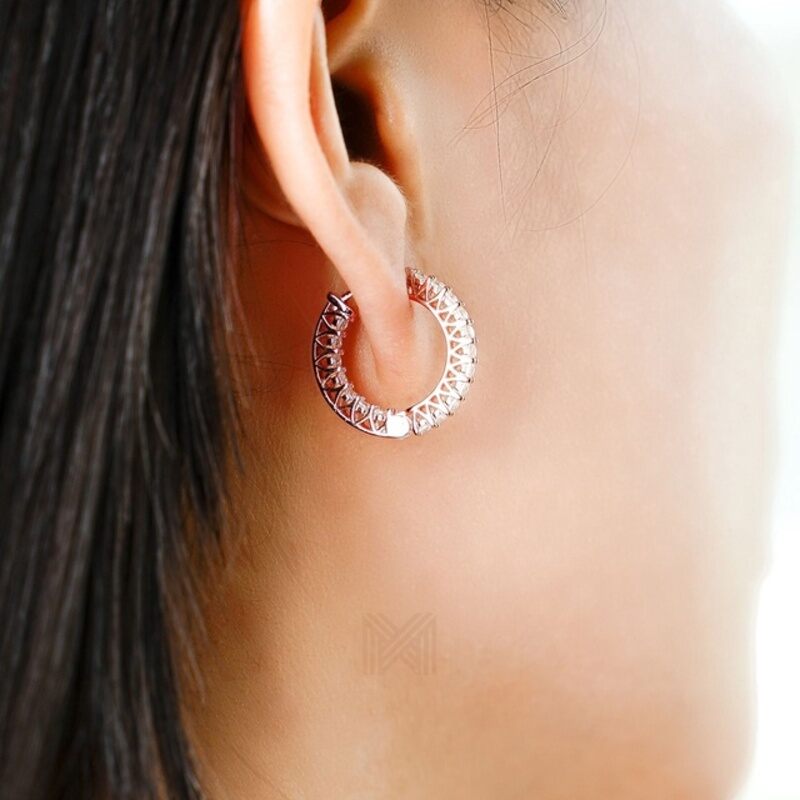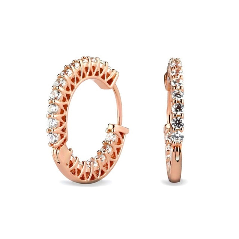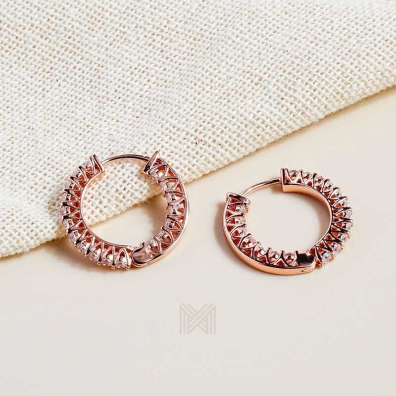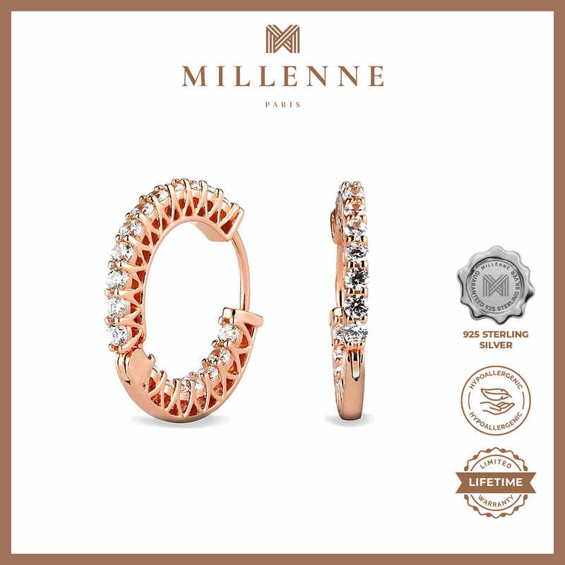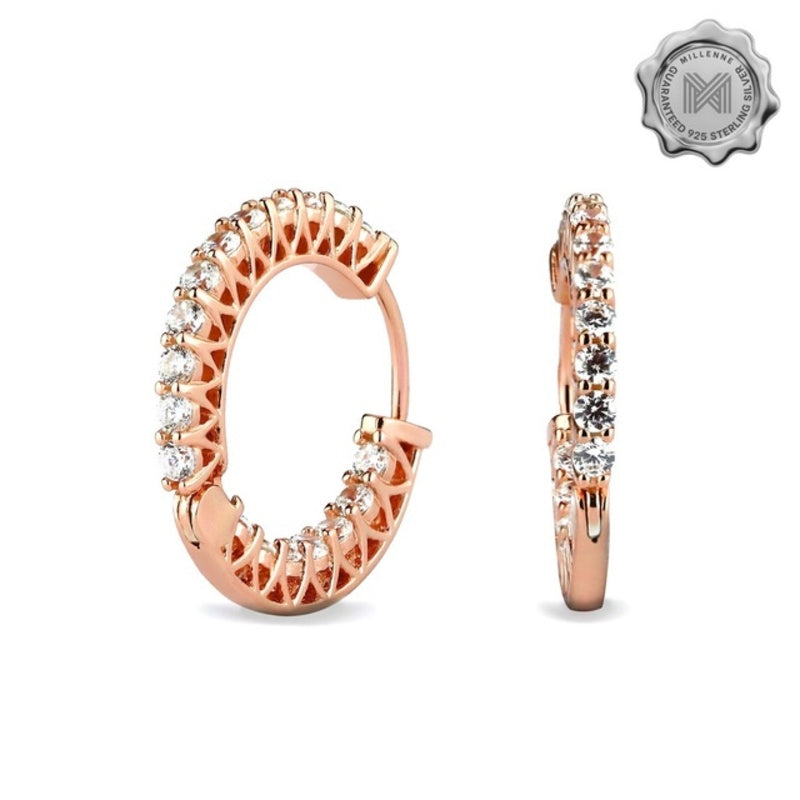 MILLENNE Made For The Night Double Lined Cubic Zirconia Rose Gold Hoop Earrings with 925 Sterling Silver