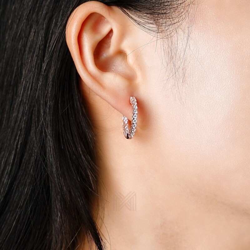 MILLENNE Made For The Night Double Lined Cubic Zirconia Rhodium Hoop Earrings with 925 Sterling Silver