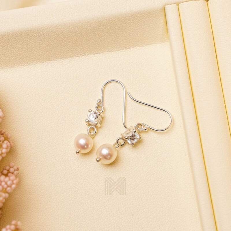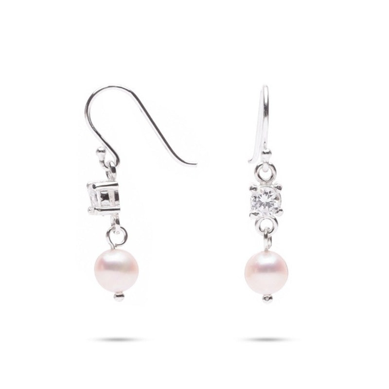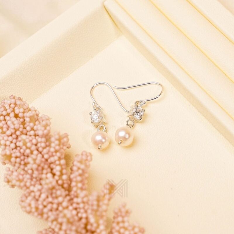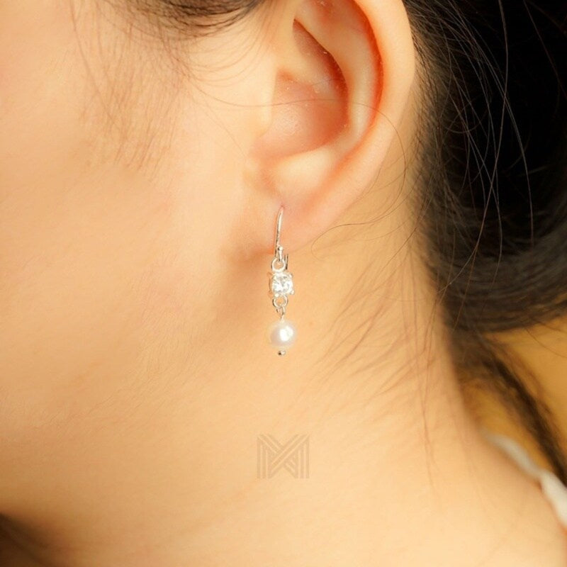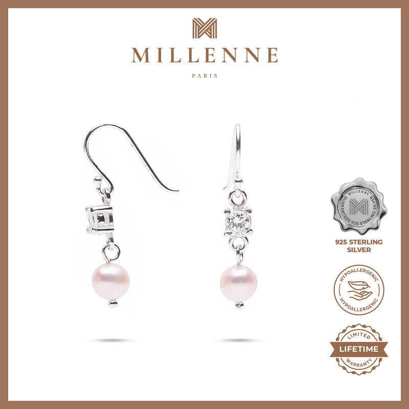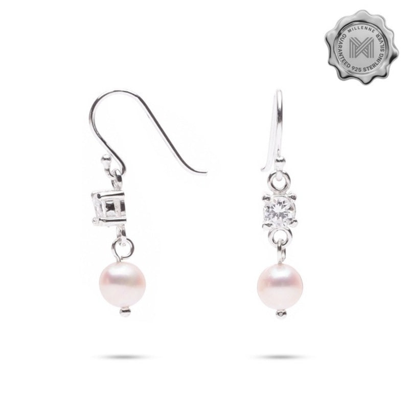 MILLENNE Made For The Night Freshwater Pearls and Studded Cubic Zirconia Silver Dangle Earrings with 925 Sterling Silver