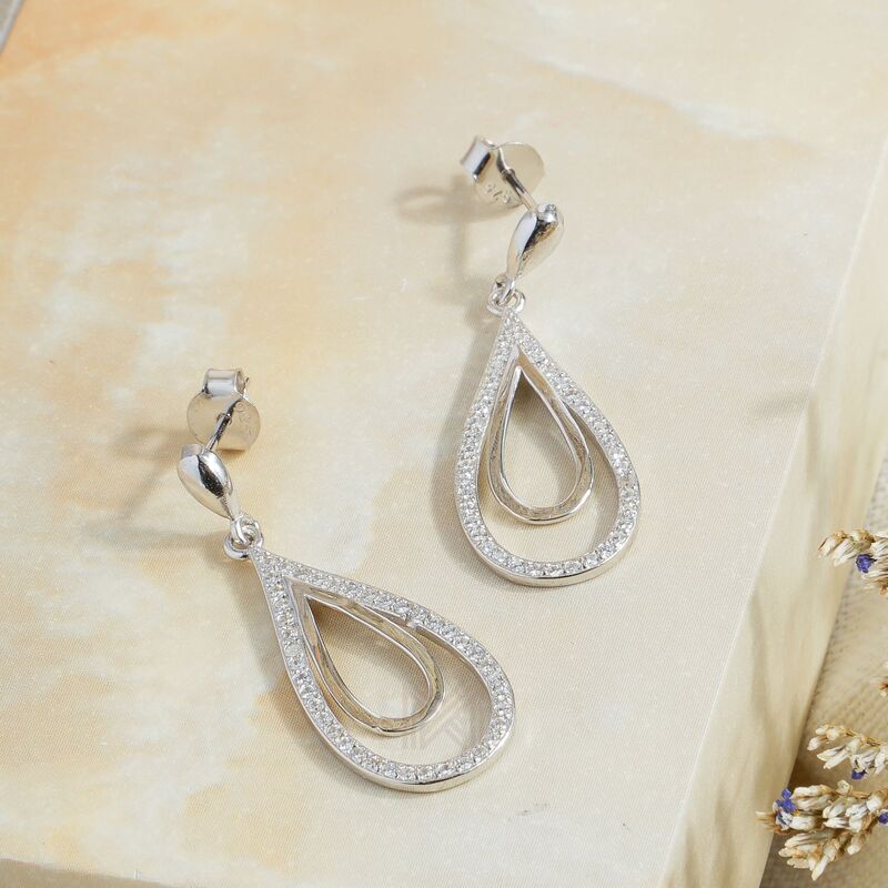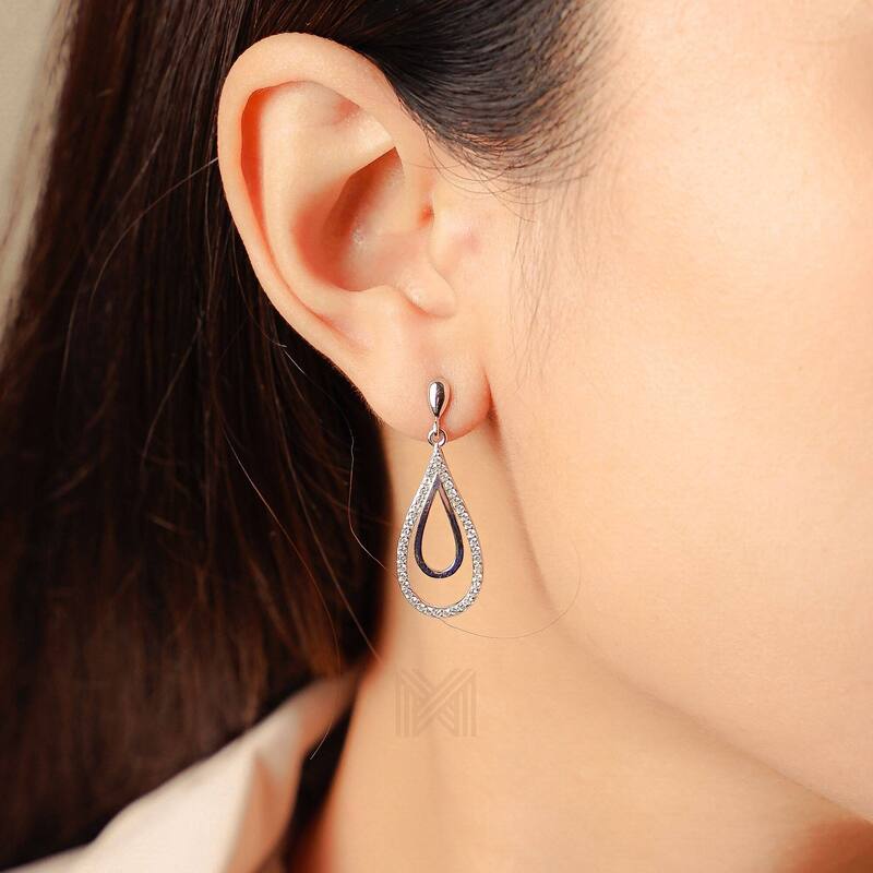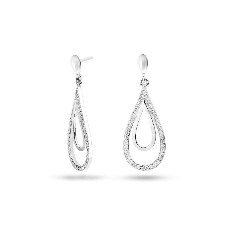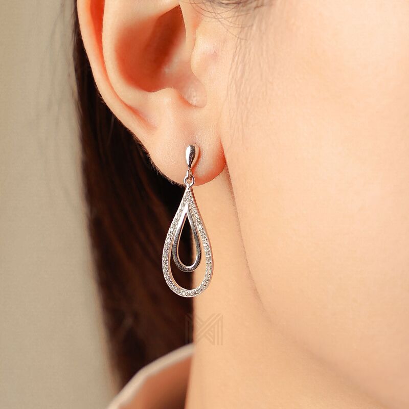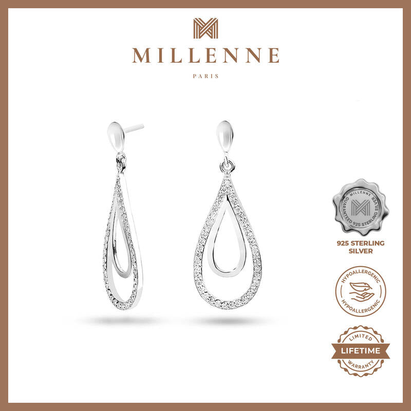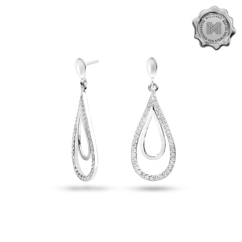 MILLENNE Made For The Night Dual Tear Drop Cubic Zirconia Silver Teardrop Earrings with 925 Sterling Silver