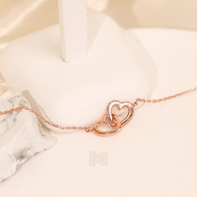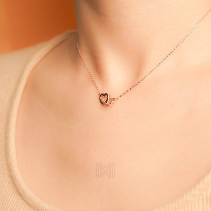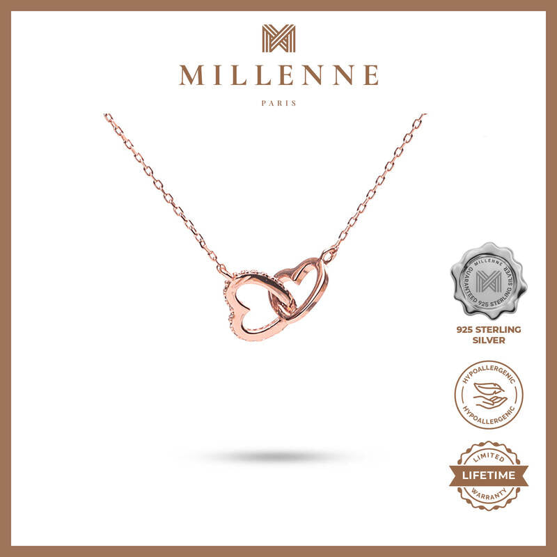 MILLENNE Made For The Night Forever Linked Hearts Cubic Zirconia Rose Gold Necklace with 925 Sterling Silver