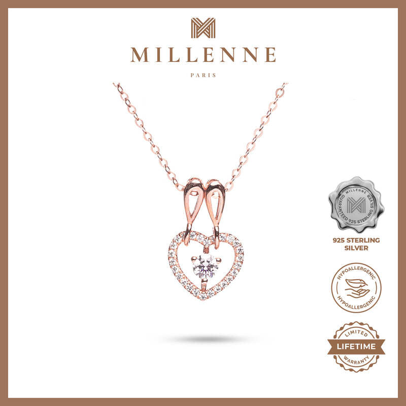 MILLENNE Made For The Night Forever Cubic Zirconia Rose Gold Necklace with 925 Sterling Silver