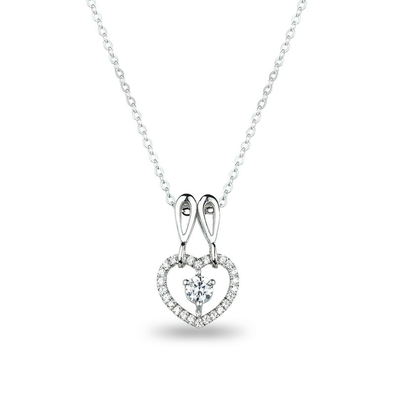 MILLENNE Made For The Night Double Hoop Heart Cubic Zirconia White Gold Necklace with 925 Sterling Silver
