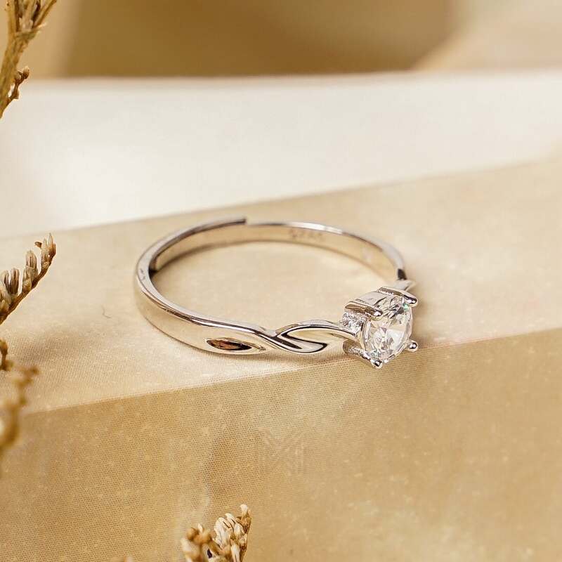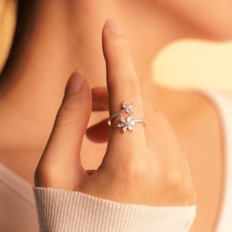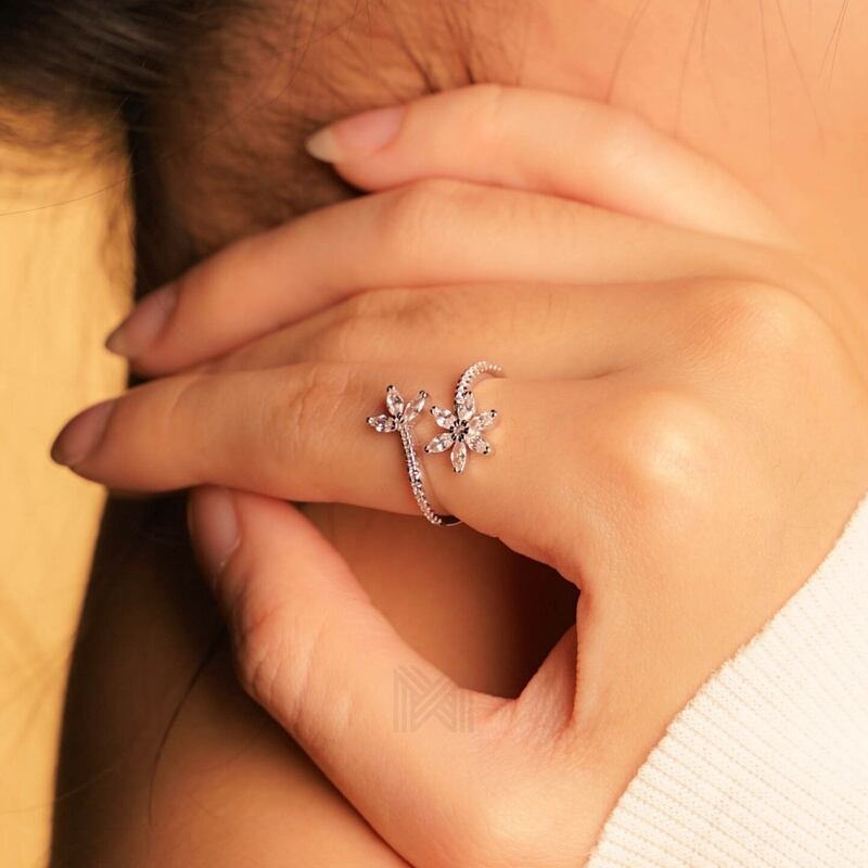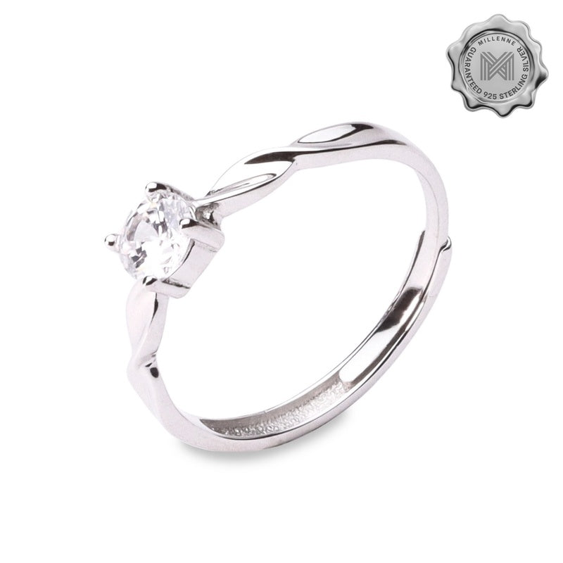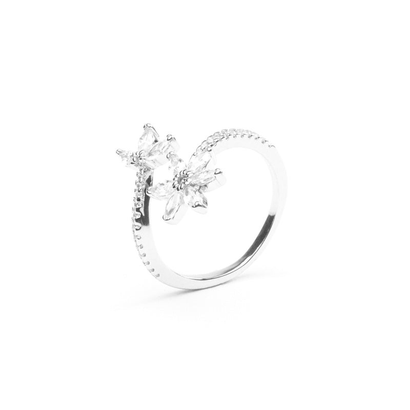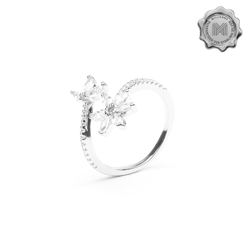 MILLENNE Made For The Night Flower Cubic Zirconia Silver Adjustable Ring with 925 Sterling Silver